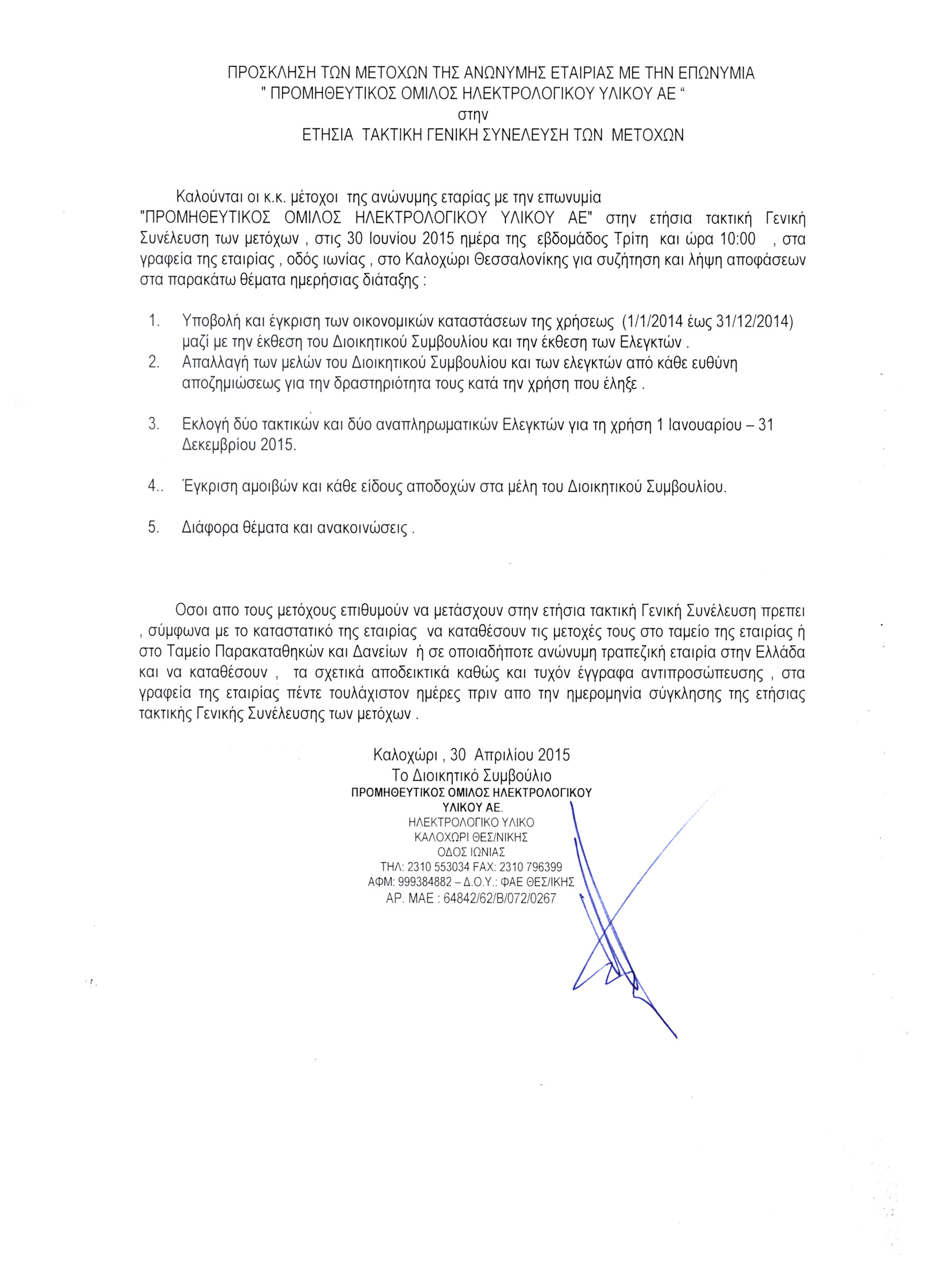ΠΡΟΣΚΛΗΣΗ ΓΙΑ ΕΤΗΣΙΑ ΤΑΚΤΙΚΗ ΓΕΝΙΚΗ ΣΥΝΕΛΕΥΣΗ